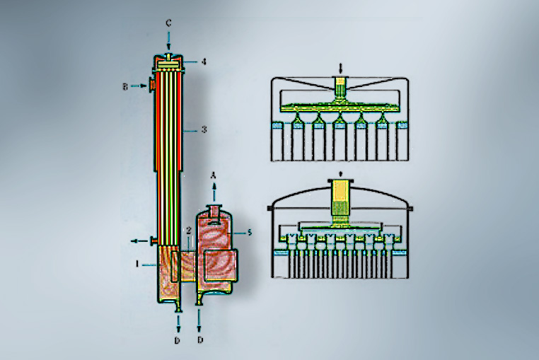 In a circulating evaporator, the liquid rises again into the…