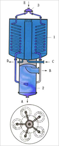 Self-circulating evaporator In a circulating evaporator, the liquid rises again into the overheating tube according to the principle of the siphon pump. In the separator connected thereto, the liquid is separated from the steam and flows back to the evaporator through the circulation pipe to form a closed circuit cycle. The greater the temperature difference between the heating chamber and the boiling chamber, the more steam bubbles are generated, which enhances the action of the siphon pump and increases the flow rate for good heat transfer. The standard evaporator is an old-fashioned circulating evaporator. A thicker circulation tube is installed at the center of the heating tube bundle, and the liquid level is higher than the upper tube sheet, so the amount of liquid is relatively high. ![]() Forced circulation evaporator Forced circulation evaporators are used to avoid fouling or crystallization of products boiling on the heating surface, for which reason the flow rate in the tubes must be high. The circulating liquid is heated as it flows through the heat exchanger and then partially vaporized as the pressure in the separator decreases, thereby cooling the liquid to a boiling temperature corresponding to the pressure. Due to the circulation pump, the operation of the evaporator is basically independent of the temperature difference, the recirculation rate of the material can be adjusted, and the evaporation rate is set within a certain range. In the crystallization application, the crystal can be adjusted by circulating flow rate and using special separation. The device design is separated from the circulating crystal slurry. The tubes can be arranged horizontally or vertically, depending on the conditions of the site and the requirements of the process, and in particular, when hot water is used instead of water vapor as the heating medium, a plate heat exchanger can be used. 1、Discharge pump 2、Discharge pump 3、Inlet 4、Splitter A、Heating steam inlet B、Concentrate outlet C、Condensate outlet D、Secondary steam outlet E、Heat exchanger ![]() Spiral tube evaporator Spiral tube evaporators are particularly suitable for achieving high concentrations and high viscosities. In order to achieve a high evaporation ratio, such evaporators operate at high temperature differences and in a single pass. In the spiral heating tube, the liquid to be evaporated flows from the top to the bottom, and at the same time, the boiling film flows in parallel with the steam. Since the heating tube is of course spiral shape, a long tube can be accommodated in a medium-high apparatus, after a long period of time. The steam generated in the flow of the pipe exerts a high shear force on the liquid film. For this reason, the curved spiral tube will cause a secondary flow, which is applied to the flow along the tube axis, which promotes turbulence and enhances heat transfer in the case of high viscosity. ![]() |